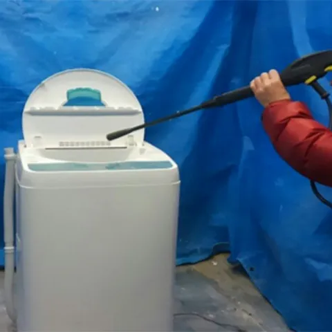 高圧洗浄機や専用洗剤で細かな箇所まで洗浄し、殺菌消毒を施します。特に洗濯機においては他では実施する事の無い「分解清掃」を実施。