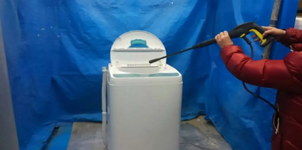 洗濯機の例をご紹介。整備、清掃、検査の流れで製品化されます。